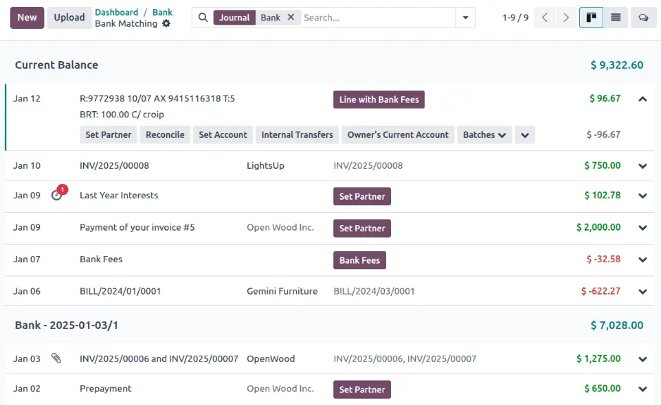 Connect your bank accounts directly with Odoo to import transactions automatically. The system uses intelligent matching to reconcile 95% of records without human input — ensuring accurate, up-to-date balances every day.